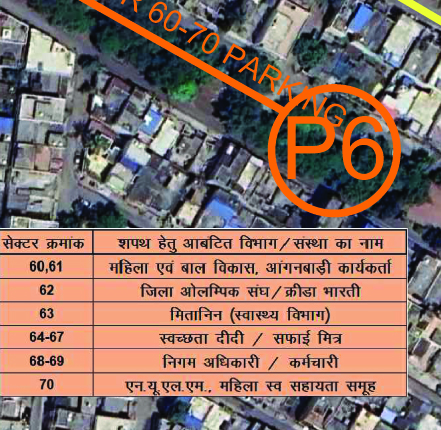 निर्धारित कार्यक्रम के अनुसार सेक्टर क्र. 01 से 11 तक के लिए पार्किंग क्रमांक 01 मुड़ापार हेलीपेड को पार्किंग स्थल बनाया गया है, जहॉ पर जनप्रतिनिधियों, प्रशासनिक अधिकारियों, पत्रकारबंधुओं, कार्यालयीन अधिकारी कर्मचारियों, वन विभाग, चेम्बर आफ कामर्स, रेडक्रास सोसायटी, लायंस क्लब, रोटरी क्लब, नमामी हसदेव व समाज, आमनागरिक, पुलिस विभाग एवं बैंक कर्मियो के वाहन खडे़ किए जाएंगे। इसी प्रकार सेक्टर क्र. 12 से 23 तक के लिए पार्किंग क्रमांक 02 ओपन थियेटर मैदान को पार्किंग स्थल बनाया गया है, जहॉं पर स्वास्थ्य एवं चिकित्सा विभाग, मेडिकल व नर्सिंग कालेज, छत्तीसगढ़ शासन, एन.टी.पी.सी., एसईसीएल, बालको, के.एन.कालेज, मिनीमाता कालेज, शासकीय महाविद्यालय, अग्रसेन कालेज, शिक्षा विभाग, महिला एवं बाल विकास विभाग, आंगनबाड़ी कार्यकर्ता व जिला ओलंपिक संघ के वाहनों की पार्किंग की जाएगी। इसी प्रकार सेक्टर क्र. 24 से 35 तक के लिए पार्किंग क्रमांक 03 आर.पी.नगर दशहरा मैदान में पार्किंग स्थल बनाया गया है, जहॉं पर सेजेस कन्या साडा कोरबा, सरस्वती शिशुमंदिर सीएसईबी केारबा पूर्व, शासकीय उच्चतर माध्यमिक विद्यालय पीडब्ल्यूडी कोरबा व सेजेस एनसीडीसी कोरबा की बसें व वाहन खडे़ किए जाएंगे। वहीं सेक्टर क्र. 36 से 47 तक के लिए पार्किंग क्रमांक 04 सुभाष चौक से सबस्टेशन की ओर जाने वाले मुख्य मार्ग पर पार्किंग स्थल रहेगा, जहॉं पर न्यू एरा पब्लिक स्कूल, सेंट जेविर्यस पब्लिक स्कूल, सेंट पेलौटी पब्लिक स्कूल रविशंकर नगर, डी.डी.एम. पब्लिक स्कूल टीपीनगर, डीपीएस स्कूल बालको एवं एमजीएम स्कूल बालको के वाहन खडे़ किए जाएंगे। इसी प्रकार सेक्टर क्र. 48 से 59 तक के लिए भी पार्किंग क्रमांक 05 सुभाष चौक से सबस्टेशन रोड पर पार्किंग स्थल निर्धारित किया गया है, जहॉं पर प्रयास विद्यालय डिंगापुर, प्रयास विद्यालय डिंगापुर व संस्कार भारती, निर्मला स्कूल रिसदी, निर्मला स्कूल कोसाबाड़ी, ब्लू वर्ड पब्लिक स्कूल, केरियर पब्लिक स्कूल, गायत्री विद्यालय सीएसईबी बुधवारी, गायत्री विद्यालय रानी रोड कोरबा, सरस्वती शिशु मंदिर सीतामणी, सेजेस अंग्रेजी माध्यम पम्प हाउस, लायंस स्कूल टीपीनगर व सीतामणी तथा बीकन स्कूल एसईसीएल व बीकन स्कूल सीएसईबी के वाहन खडे़ किए जाएंगे। इसी प्रकार सेक्टर क्र. 60 से 70 तक के लिए पार्किंग क्रमांक 06 शिवाजीनगर उद्यान के पास पुरानी रेलवे लाईन के समीप पार्किंग स्थल बनाया गया है, जहॉं पर महिला एवं बाल विकास विभाग, आंगनबाड़ी कार्यकर्ता, जिला ओलपिंक संघ, मितानिन, स्वच्छता दीदी, सफाई मित्र, निगम के अधिकारी कर्मचारी, एनयूएलएम, महिला स्वसहायता समूह सदस्यों आदि के वाहन खडे़ किए जाएंगे। निगम प्रशासन द्वारा सर्वसंबंधितों से आग्रह किया गया है कि वे उनके लिए न